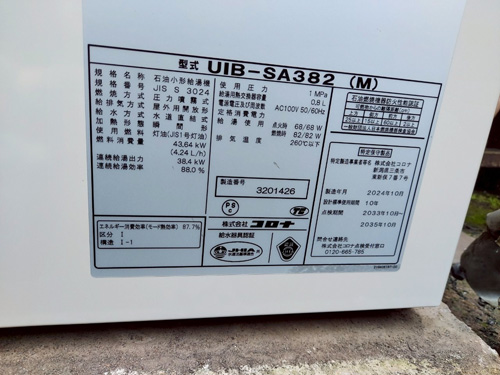 大仙市内小友 コロナ石油小形給湯機UIB-SA382(M) 給湯器交換工事
